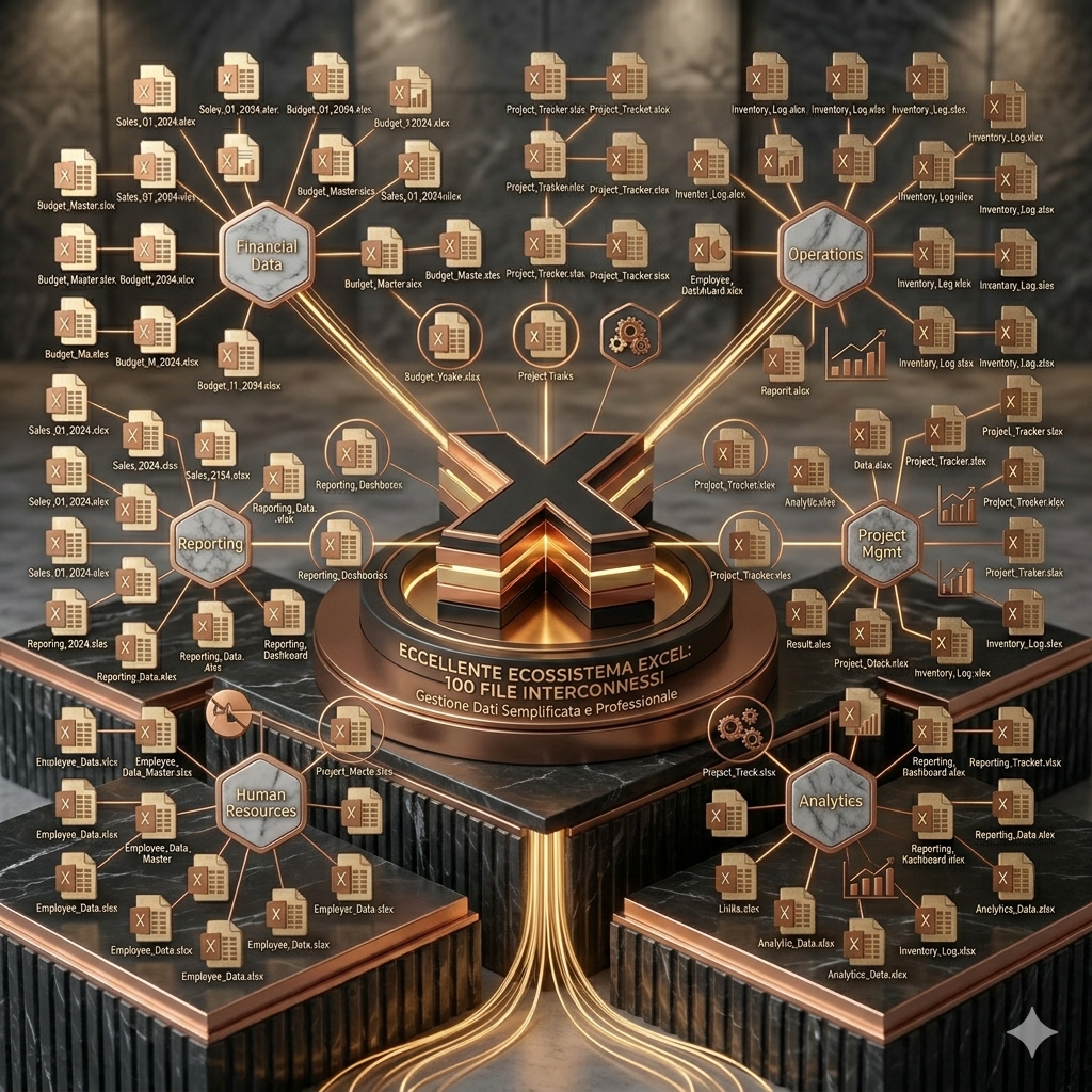 Un insieme di 100 file racchiusi in un’ unica dashboard, tutto catalogato e organizzato per permetterti di gestire i tuoi dati in modo rapido e ordinato.