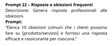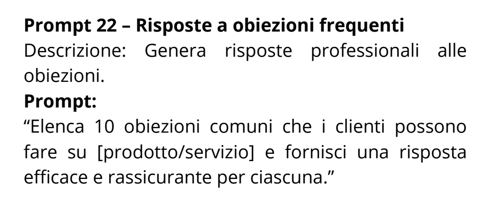 💼 Vendita & Customer service – prompt per analisi di mercato, idee di business, piani editoriali e strategie di vendita.