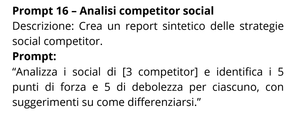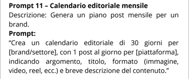 🎥 Social Media & Contenuti – prompt per creare post virali, caption coinvolgenti, storytelling e calendari social completi.